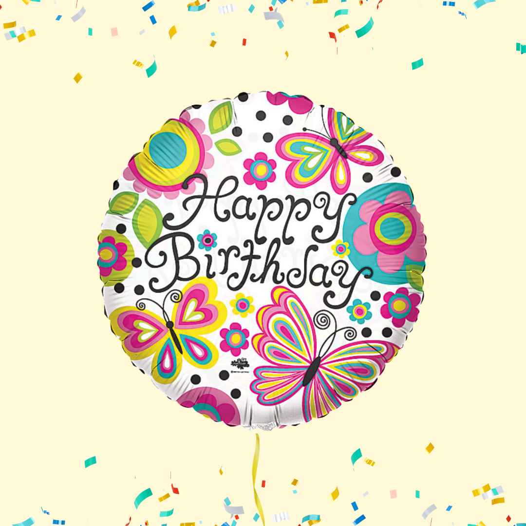 Een blauwe helium ballon met de tekst Happy Birth Day!